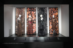 Dans cette vaste exposition, le musée Yves Saint Laurent revient sur le talent du couturier pour les effets de transparences au travers de nombreuses créations.