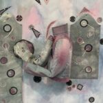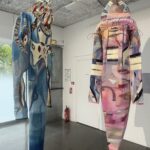 En toile puis en habits, déchirée puis réassemblée, la peinture occupe l’espace et cherche votre regard pour que vous créiez vous-même l’histoire qui s’y déroule. Cape en suspens, ronde de tabliers, robe de soirée : qui sont les personnages qui habitent, habitaient, habiteront ces vêtements ? Sans corps, ces œuvres suivent le mouvement du spectateur, l’imaginaire qu’il y projette. Des couleurs rosées au pouvoir féérique, aux tâches rouges organiques qui s’y dissimulent, au bleu nuit enluminé de filaments dorés, Mathilde Denize nous guide dans un espace hors du temps délimité par une ligne pelliculaire où chacun raconte son propre rêve.