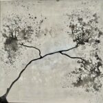 Face à cette sérénité, la peinture de Bô Gaultier de Kermoal surgit comme une réplique viscérale. Né au Vietnam en pleine guerre, d’une mère vietnamienne et d’un G.I. cherokee, adopté à quatre ans par une famille bretonne, il porte dans sa chair les fractures de l’histoire. Ses toiles, réalisées à même le sol, sont traversées d’une énergie brute. Entre deux continents, deux sangs, deux mémoires, elles donnent corps à une humanité fragile, toujours sur la faille, où l’équilibre semble prêt à se rompre. Sa peinture n’apaise pas, elle réveille, fait émerger des sensations enfouies, parfois violentes, toujours vitales.