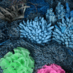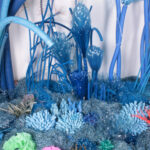 L’univers d’Angèle Riguidel se découvre comme une fable écologique : séduction visuelle d’abord, révélation ensuite. Car tout ici est issu de nos rebuts – filets à légumes transformés en algues, bouteilles métamorphosées en coraux, tuyaux d’arrosage devenus lianes. Le merveilleux, littéralement, repose sur les déchets de notre quotidien. Depuis plus de vingt ans, elle recycle, détourne, réinvente, avec la conviction que l’art peut éveiller les consciences sans passer par la culpabilité. Ici, l’enchantement des formes et la surprise des matières précèdent le choc de la prise de conscience.