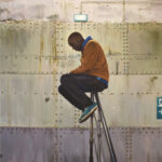 Point d’orgue de l’exposition, Paname, immense toile créée pour l’occasion, fait face aux Halles de Paris de Léon Lhermitte. Deux scènes de marché, à un siècle d’écart, se répondent comme deux miroirs : là où Lhermitte exalte la foule laborieuse, Hamdad capture un instant fragmenté, plus fragile, où l’agitation urbaine se double d’un sentiment d’isolement. En infiltrant son regard contemporain au cœur du patrimoine, Hamdad force notre œil à mesurer l’écart mais aussi la continuité : la peinture demeure un langage de vérité, capable de raconter la foule autant que la solitude. Dans ces salles chargées d’histoire, quelque chose cloche, et c’est précisément ce trouble qui fait sens.
