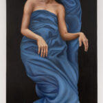 Mais à mesure que l’œil s’attarde, l’évidence se fissure. Quelque chose cloche. Les visages semblent trop parfaits pour appartenir au réel, les corps composés de fragments, les identités flottantes, insaisissables. Ce qui paraissait ancien bascule alors dans une étrange contemporanéité. Car les modèles de Sophie Kuijken n’existent pas. L’artiste, héritière des techniques flamandes, les fabrique à partir d’images glanées sur Internet : un bras, un vêtement, un visage, assemblés numériquement avant d’être réincarnés sur la toile. Ce sont des êtres hybrides, chimères discrètes qui portent en elles la surcharge visuelle de notre époque. Entre peinture et numérique, passé et présent, ses portraits révèlent une humanité recomposée, à la fois singulière et universelle. Cette tension entre tradition et invention irrigue toute son œuvre.