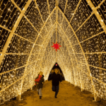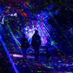 Plus loin, un dialogue inattendu fait se répondre jets et flammes : la « symphonie des éléments » ne cherche pas l’effet, elle tient la note, elle enveloppe. On sourit devant un bassin semé de canards lumineux, clin d’œil d’enfance qui transforme la perspective ; on cadre, sur la terrasse du château, une « fenêtre sur Paris » avec la ville en toile de fond, souvenir garanti sans filtre. Le long du canal, une aurore givrante effleure les arbres : rien d’illustratif, plutôt une sensation – celle d’un froid bleu qui crépite doucement. Ce qui fait la force de cette édition, c’est la manière de ménager des rythmes. Après les tableaux spectaculaires, des clairières d’intimité : on écoute le parc respirer, on se laisse guider par des chimes interactifs qui traduisent un geste en son et lumière, on s’invente une petite fête au bord de l’allée.