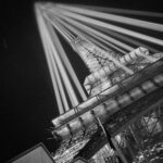 Son objectif traverse les décors de l’époque – paquebots, ateliers, gares, scènes de cirque ou coulisses de l’Opéra Garnier – avec un sens de la composition d’une précision presque cinématographique. Entre reportage et mise en scène, ses images saisissent la beauté des gestes et la poésie du quotidien : un acrobate suspendu dans le vide, une horloge de gare, les reflets d’acier d’un chantier ou la silhouette d’une tour Eiffel qu’il humanise sous l’œil de Bourdelle.