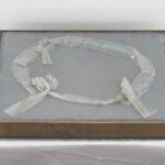Une culotte découpée devient étendard, un sac froissé fait archive, une rose exhumée d’un site antique se love sous filet : le domestique se dédouble en rituel. Série Funny and Fun, rubans brodés, écrins miniatures, papiers travaillés à vif… ses pièces ressemblent à des messages passés de main en main, chiffonnés, puis sacrés. Ici Bonino s’inscrit dans une généalogie qui casse les cloisons – de Marisa Merz à Dieter Roth, de Gianni Colombo à Lutz Bacher.