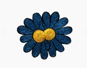 Et si la science-fiction se portait à la boutonnière ? Avec cette broche double marguerite d’un bleu céleste, brodée à la main à la manière d’un bijou ancien, Laurent Grasso cultive son herbier du futur. Un fragment d’utopie, entre nature rêvée et art conceptuel, à épingler sur une veste ou un pull de mohair. Poétique, rare et certifiée par l’artiste : une fleur pour celles et ceux qui préfèrent cueillir l’art plutôt que les bouquets.