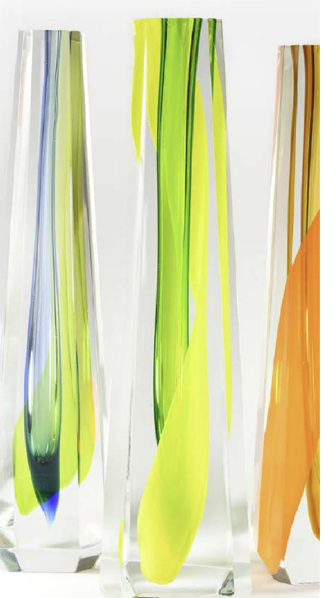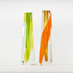 C’est un défi qu’il s’est lancé : créer ses verres comme des peintures. y inscrire en plus de la transparence, le mouvement. Ici, Marco Mencacci explore les limites mêmes de son matériau, cherchant à fixer dans la matière ce qui, par essence, échappe : le geste, la couleur, la vibration. Inspiré par les drapés maniéristes du Pontormo, les éclats d’or de Fra Angelico, les élans abstraits de Hans Hartung ou la rigueur géométrique de Rodchenko, il compose une œuvre d’une rare intensité. Ses formes de verre, polies comme des fragments de prisme, captent dans leurs volumes le passage d’une lumière intérieure, comme si la couleur s’y était déposée en suspension. Le résultat, à la frontière de la peinture et de la sculpture, relève presque de l’alchimie : une matière pensée comme un espace, une couleur devenue souffle. Dans cette nouvelle série, le sculpteur italien, installé à Paris depuis vingt-cinq ans, poursuit son dialogue entre art et design, architecture et poésie, signant un manifeste silencieux – celui d’un artiste pour qui le verre est avant tout une expérience du regard.