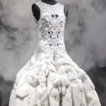 Elle crée des sculptures évanescentes qui ont défilé sur les plus grands podiums. Yiqing Yin, première créatrice d’origine chinoise à avoir intégré le très restreint cercle de la haute couture française, déploie ici plus de soixante-dix créations dans une mise en scène d’une beauté presque irréelle. La Cité de la dentelle et de la mode accueille une exposition d’une rare intensité, mêlant la délicatesse du textile à la force du souffle, les mots à la matière, les parfums à la lumière. Organza, mousseline, velours vénitien, dentelle, cristal… le tissu devient un organisme, faisant de chaque robe un paysage en métamorphose. Certaines semblent faites d’eau, d’autres de brume ou de lianes fragiles. Dans cette couture sculpturale, le pli prolonge les mouvements du corps, les suspend, les efface parfois, ne laissant plus que le souffle. Ici, les poèmes de Yiqing Yin flottent dans l’espace ; là, sa voix s’élève dans un murmure, tandis que les parfums inédits imaginés avec Dominique Ropion – maître parfumeur parmi les plus grands – diffusent leurs effluves au rythme du parcours. Les photographies de Laurence Laborie prolongent cette suspension du réel : dans la lumière nacrée, les robes semblent prêtes à s’envoler, nous offrant un moment suspendu autour de créations faites d’air et de songes.