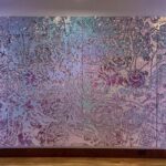 Ici, Mathieu Valade s’amuse à brouiller la frontière entre le tangible et le virtuel. L’artiste québécois orchestre un dialogue vibrant entre le  geste et l’algorithme, le pixel et la poussière, dans un ballet où le réel se met à vriller. En résidence pendant trois mois, Valade a transformé ce lieu de co-création en laboratoire d’interférences. À travers ses tableaux en sequins réversibles, il peint des paysages en feu qui changent de visage au moindre mouvement : la main devient curseur, le refl et un tremblement. Dans ses vidéos générées par intelligence artificielle, des bâtiments se dissolvent sous la pluie ou s’érodent lentement sous la lumière ; le visible se décompose, se re forme, comme pris dans une respiration numérique. Le bruit, le « noises », n’est plus une erreur de lecture : il devient la texture même du monde.