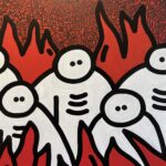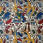 Noir, blanc, rouge, bleu… Ses couleurs éclatent dans un joyeux bazar visuel ponctué de citations sur l’économie circulaire. Entre rue, salon ou atelier recréés, rien ne l’arrête : grand format, recyclage, détournement — tout y passe. Et le mieux ? Vous faites partie de l’œuvre. Le D vous invite à laisser votre trace, parce que, tout comme un déchet isolé paraît anodin, c’est l’impact collectif qui compte.