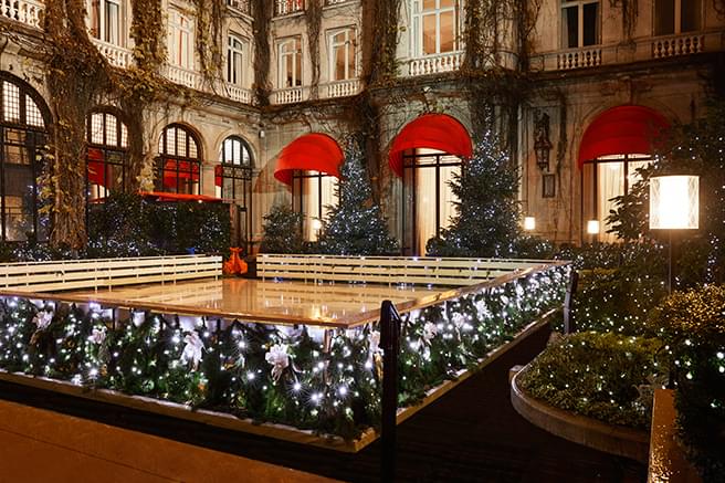 Entourés de sapins scintillants, patinez au cœur de l'un des plus prestigieux palace parisien.