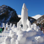 Au cœur du village, dans l’avenue de la Vallée d’Or entièrement piétonne, les équipes travaillent sans relâche. Par groupes de trois, vingt artistes venus du monde entier affrontent la matière brute, le froid, la lumière changeante. La neige se creuse, se tend, s’élève jusqu’à former des architectures fragiles, des figures poétiques ou engagées. Un geste trop appuyé, une variation de température, et tout peut basculer. Ici, chaque sculpture est un pari. Le public circule librement entre les œuvres en devenir, observe les mains à l’œuvre, les volumes qui émergent heure après heure. Certaines créations frappent par leur force symbolique — comme Chaleur intérieure de l’équipe iranienne, Gentle Wave portée par les artistes chinois ou Crossroads côté suédois — révélant la diversité des regards et des imaginaires réunis à Valloire. La neige devient langage, récit, sculpture vivante.