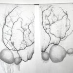 L’Espace d’art Chaillioux ouvre 2026 avec cette vibration sus pendue. À un fil… : un titre comme un souffle, un écho des Moires filant nos destins, une promesse d’énigme où le textile devient matière à rêve, territoire d’inquiétude douce. Cinq artistes orchestrent cette cartographie sensible. Gaëlle Bosser, avec ces assemblages de dentelle, les formes tricotées de Florence Brodard prennent ensuite le relais, Rose Coogan, et ces assemblage de tasses, figurines et textiles, Frédérique Gourdon et ces membranes fragiles puis viennent les torsions textiles de Sarah Krespin. Ici le fil ne rompt pas, il raconte.