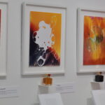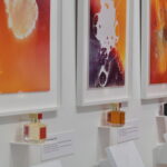 Le procédé intrigue immédiatement. Quelques gouttes de parfum seulement, déposées sur du papier photographique argentique. Pas plus. Et pourtant, l’image apparaît. Abstraite, organique, vibrante. Une empreinte visuelle née de l’odeur. Le parfum devient trace, matière, geste artistique.