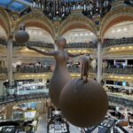 C’est pourtant là que commence cette expérience singulière. Non dans un musée, non dans un white cube, mais au cœur d’un grand magasin traversé chaque jour par une foule mondiale. Un lieu de passage, de désir, de vitesse. Un endroit où l’on ne vient pas chercher l’art – et où l’art, précisément, décide d’apparaître. Sous la coupole, dans les escaliers, entre deux étages, sur la terrasse panoramique, les œuvres surgissent sans prévenir. On lève les yeux et l’on tombe sur Mammalia de Gloria Friedmann : une constellation sculpturale habitée par des figures animales, gravitant autour de la coupole, comme une fable cosmique sur la fragilité du vivant.
