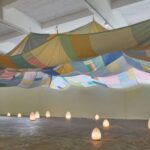 Puis vient Benoît Piéron, et la lumière change. L’artiste, qui a passé une grande partie de sa vie à l’hôpital, détourne l’esthétique sanitaire pour en faire un territoire poétique. Draps médicaux pastel devenus patchworks, radiographies transformées en apparitions fantomatiques, plantes de salle d’attente métamorphosées en forêts mentales. Pour le Palais de Tokyo, il imagine un film érotique et abstrait sous forme de théâtre d’ombres, dans un décor empruntant autant au mobilier urbain qu’au merveilleux. Trois gestes, une même intuition : ce qui est blessé n’est pas vaincu. Ce qui ploie invente d’autres lignes.