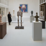 Face à elle, Giacometti – ses silhouettes filiformes, ses têtes tendues vers l’infini, son Homme qui marche, obstiné, fragile, inébranlable. Le dialogue est brutal et tendre à la fois. Une jambe isolée répond à un corps amputé. Une tête sur tige croise un visage modelé à vif. Les œuvres semblent prises entre deux forces : tenir debout ou s’effondrer. Vivre ou disparaître. Bhabha se revendique « expressionniste ». Elle travaille la trace, la marque, la cicatrice.