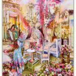 Neuf peintures nées du feu – littéralement. En janvier 2025, Los Angeles brûle ; quelques mois plus tard, Rosson Crow perd sa mère. De cette double déflagration, intime et collective, l'artiste texane installée à L.A. tire une série incandescente où piscines californiennes se consument sous les flammes, intérieurs baroques se laissent submerger par des vagues, et le mobilier de Versailles disparaît sous une végétation conquérante.