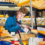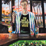 Quand tout le monde regarde la ville, Hernan Bas, lui, regarde ceux qui la regardent. L’artiste américain transforme les salles de Ca’Pesaro en théâtre du tourisme contemporain. Plus de trente nouvelles œuvres, pensées spécialement pour le lieu, mettent en scène ces “visiteurs” familiers : hommes blancs occidentaux, souvent solitaires, naviguant entre monuments iconiques, lieux sacrés, attractions surexploitées et destinations troubles. La Joconde, la fontaine de Trevi, Tchernobyl, Alcatraz. Bucket lists et dark tourism. Tout devient décor d’un ballet étrange qui fait rimer curiosité et arrogance. Hernan Bas excelle dans ces figures ambiguës – dandys modernes, flâneurs décalés, identités en transition. Ici, le regard se fait plus mordant. Les corps semblent présents mais jamais vraiment connectés aux lieux qu’ils traversent. Ils ne rencontrent pas. L’ordinaire glisse vers l’absurde.