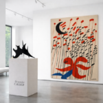 Ce ne sont pas des reproductions : le geste des lissiers transforme l'image, lui donne une présence matérielle, une épaisseur architecturale que le papier n'avait pas. La Galerie Hadjer, référence historique de la tapisserie moderne d'Aubusson depuis 1966, réunit ces pièces monumentales en écho à la rétrospective que la Fondation Louis Vuitton consacre au même moment au sculpteur américain. On y retrouve notamment Les Masques et Green Ball, deux modèles emblématiques exposés au Whitney Museum en 1976. Le mouvement réel des mobiles se fait ici mouvement visuel, inscrit dans la trame du textile. Calder au mur, Calder sans moteur – et ça bouge quand même.